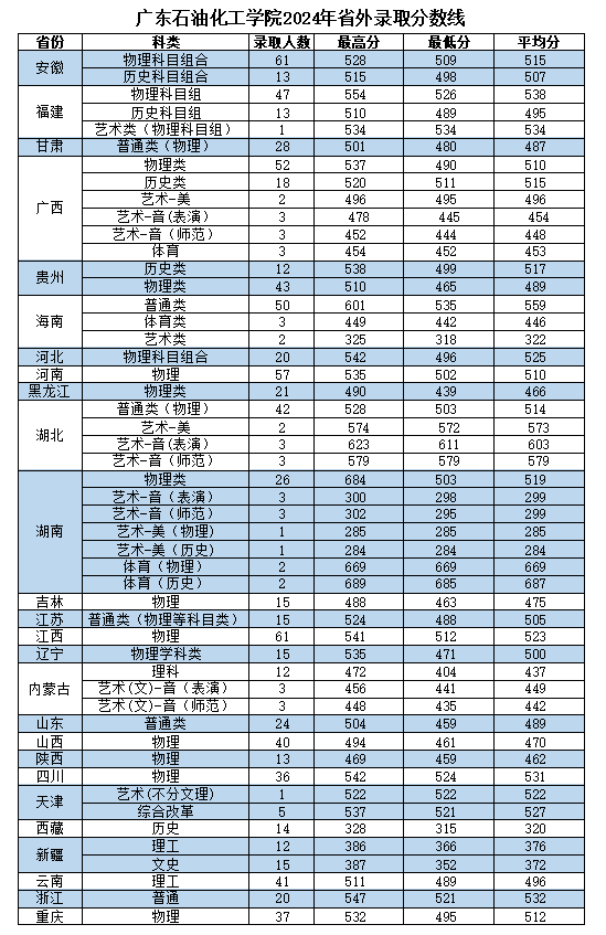 详情可以登录广东石油化工学院本科招生网(https://zs.gdupt.edu.cn/)查看历年录取分数和招生分数。