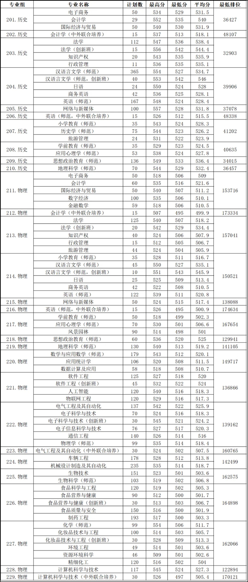 今年录取人数比去年增加2133人,今年生源质量保持稳定。历史201组经管类、203组法学类、和205组网络与新媒体专业录取分数有提升,最低录取排位较去年提升1000-4000名不等。