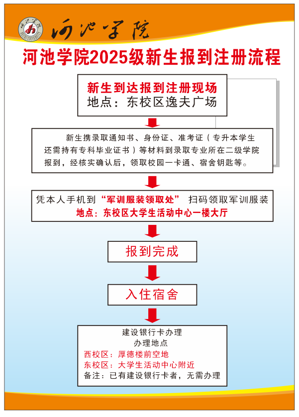 河池学院新生报到注册流程(14、15日)及校园交通引导图(14、15日)