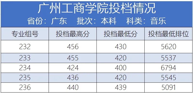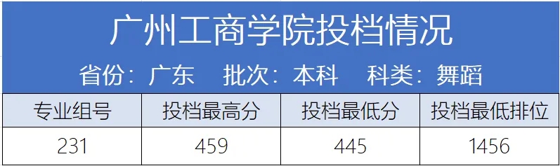 7月18-19日,广东省本科批次正式投档,我校舞蹈类231专业组、音乐类232、233专业组、美术类241专业组一次满档,其中,舞蹈类231专业组最低投档分455分,高出省控线40分,音乐类232专业组最低投档分430分,高出省控线38.75分,音乐类233专业组最低投档分420分,高出省控线28.75分,美术类241专业组最低投档分430分,高出省控线36.25分。普通类历史、普通类物理、美术与设计统考、音乐统考专业组投档后仍有缺额。请本科线上下的考生欢迎报考13714广州工商学院。
