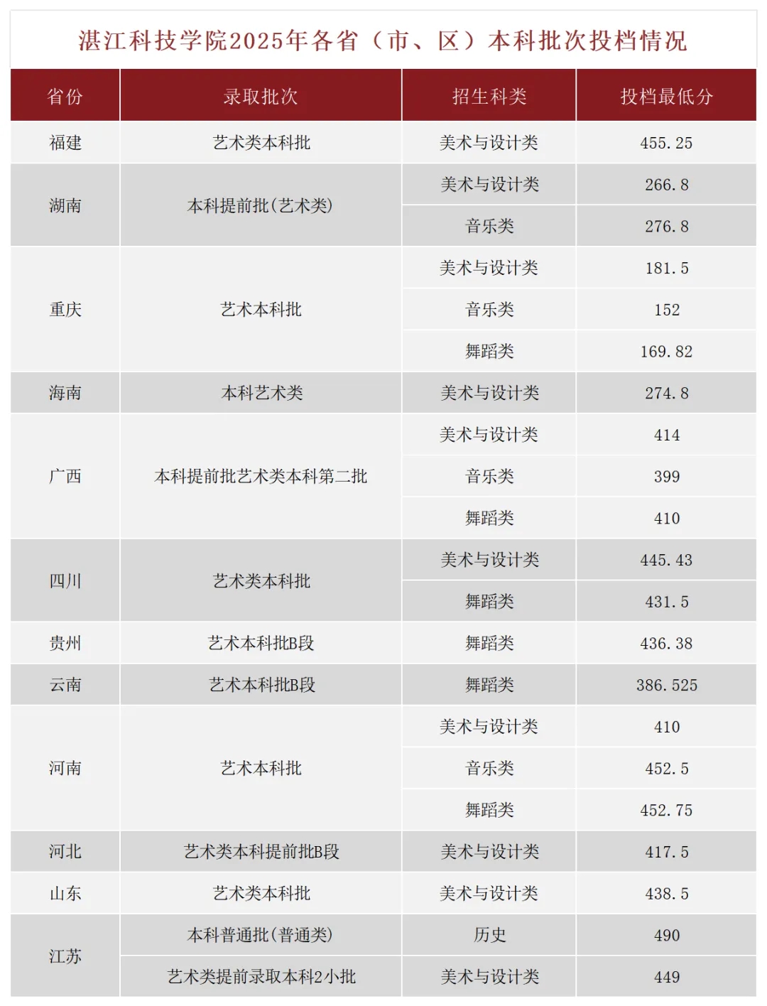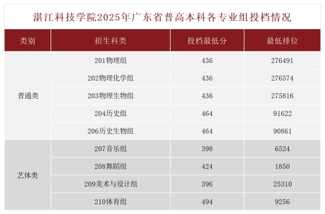 根据广东省2025年录取工作日程安排,我校招生录取工作顺利推进。7月18-19日,广东省本科批次正式投档,我校舞蹈类208专业组、体育类210专业组一次满档,普通类历史、普通类物理、美术与设计统考、音乐统考专业组投档后仍有缺额。我校录取数据已经通过广东省教育考试院审核,录取结果可在我校招生网或招生办微信公众号查询。