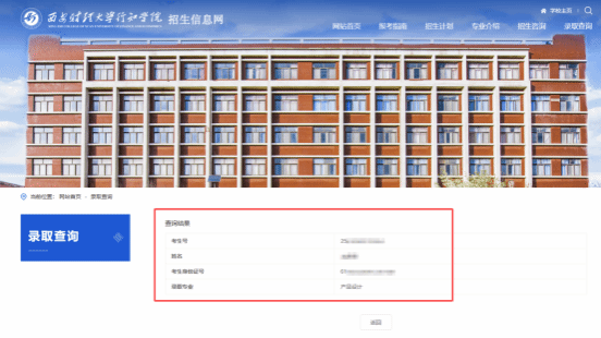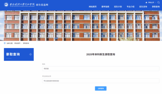 2、录取查询页面填写考生姓名和身份证号