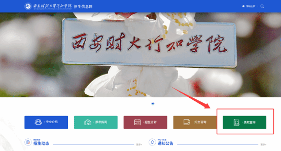 1、登录西安财经大学行知学院招生信息网(http://www.xcxz.net.cn),点击“录取查询”