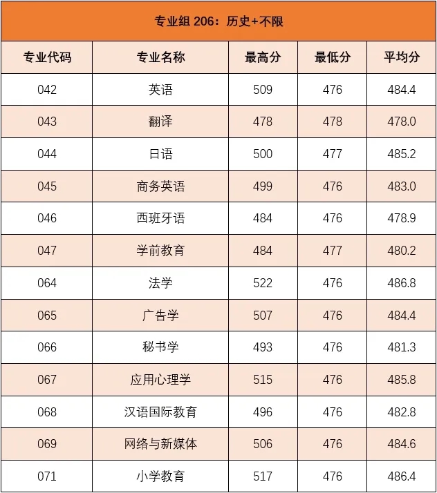各专业具体录取情况
