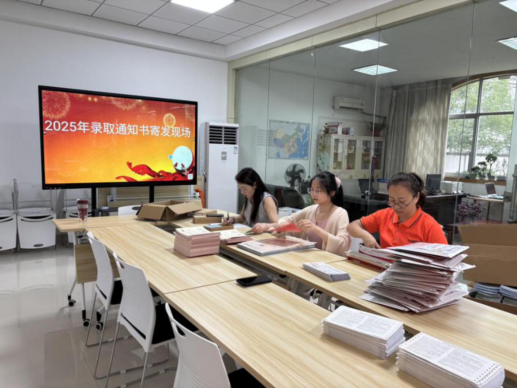 7月31日上午,安徽文达信息工程学院大学生服务中心内,2025年第一批录取通知书封装工作正有序推进。工作人员分工明确,仔细核对、封装每份通知书,将学校的期待与祝福,融入这一摞摞承载希望的信封中。