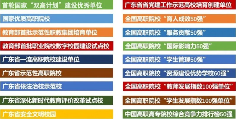 广东机电职业技术学院地处广州市白云区,是隶属于广东省教育厅的全日制公办高职院校,办学历史悠久,是首轮国家“双高计划”建设优秀单位、国家优质高职院校、广东省示范性高职院校、广东省安全文明校园,获评全国高职院校“育人成效50强”“服务贡献50强”“国际影响力50强”“学生管理50强”“资源建设优势学校60强”“学生发展指数优秀院校100强单位”。