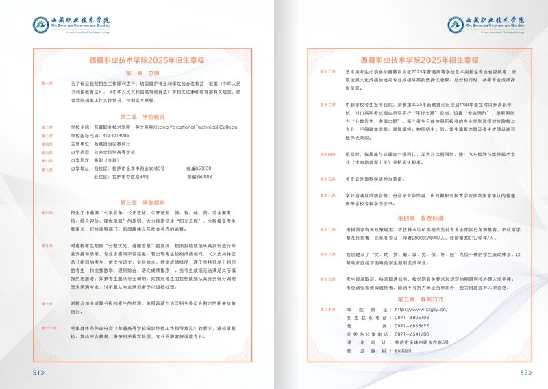 1、西藏职业技术学院2024年招生章程