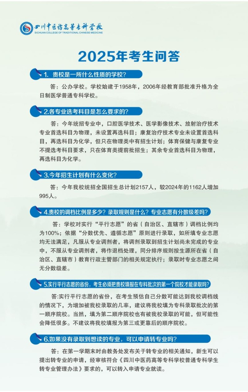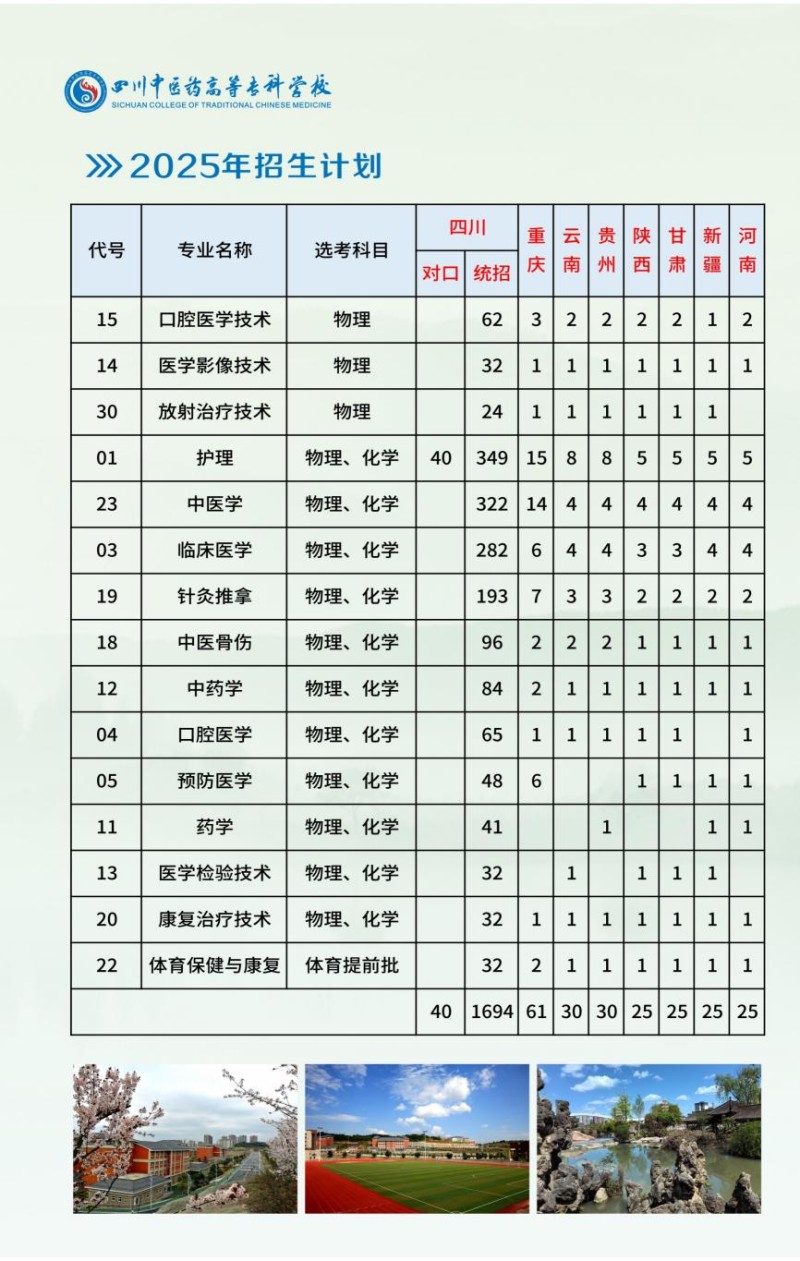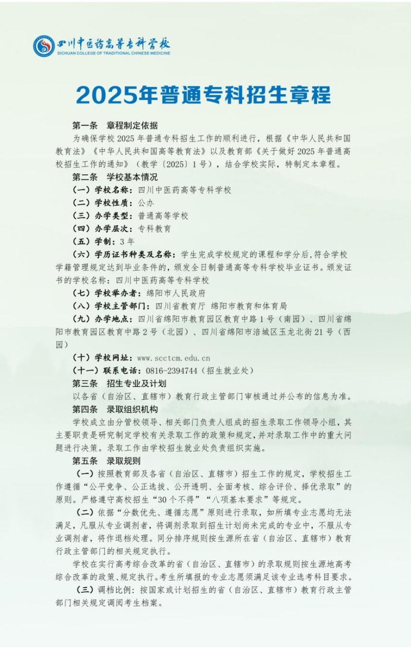 1、四川中医药高等专科学校2025年普通专科招生章程