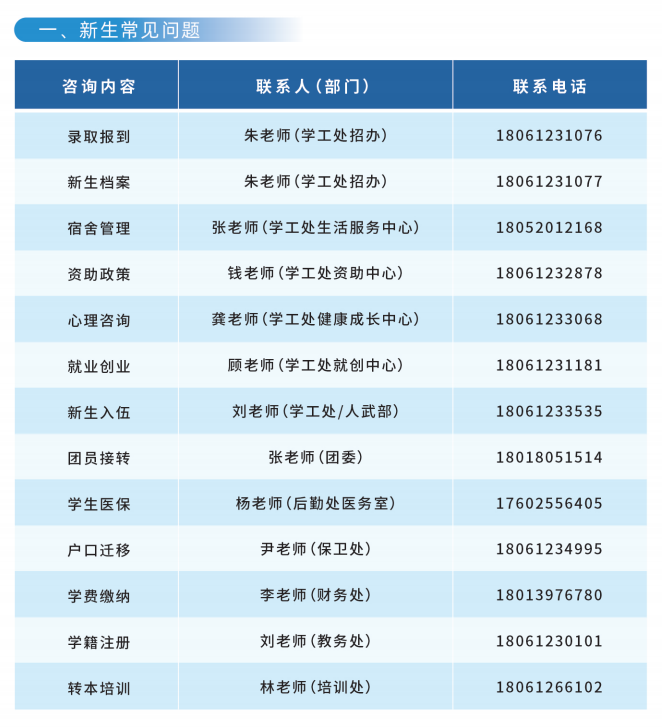 新生常见问题咨询联系方式
