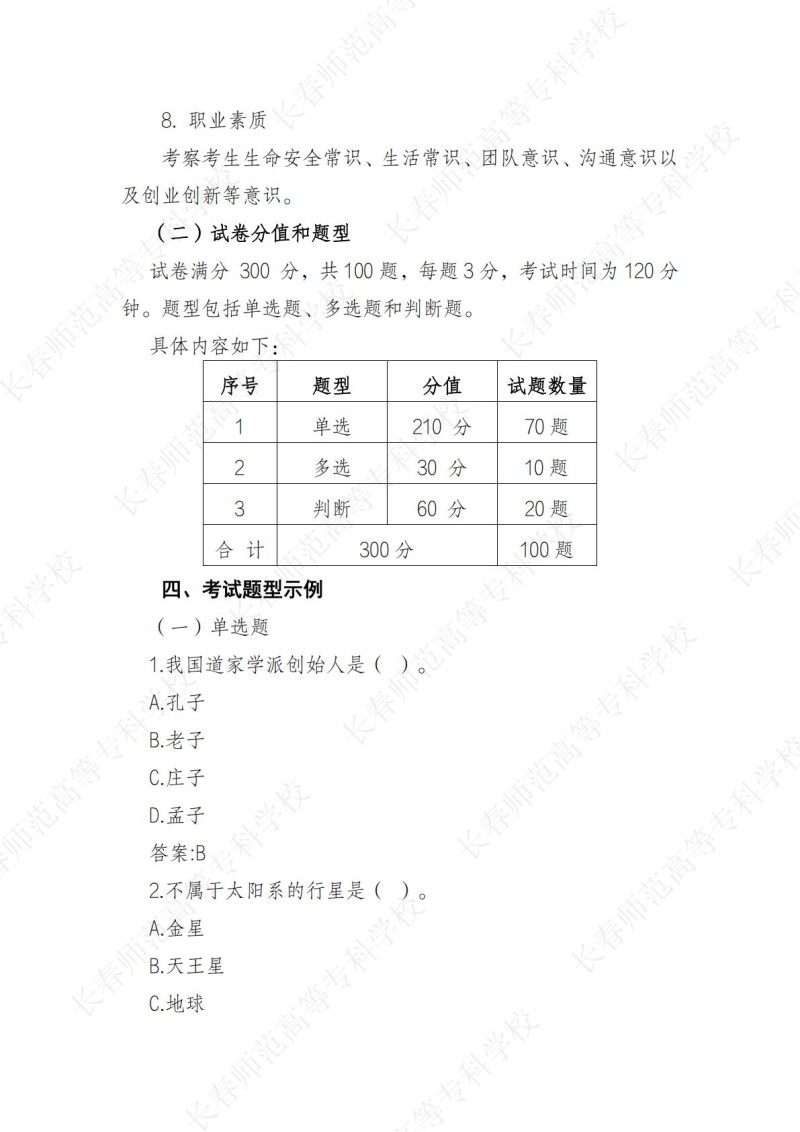 2、长春师范高等专科学校2024年招生章程