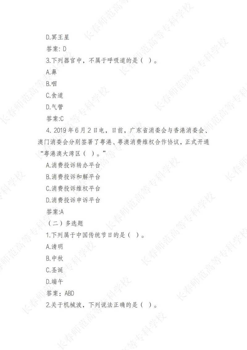 9、长春师范高等专科学校2023年高职单招职业技能测试...