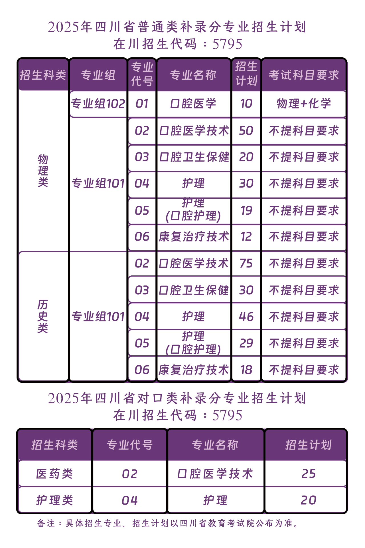 根据四川省教育考试院《关于做好2025年普通高校招生专科层次补录工作的通知》(川教考院〔2025〕92号)规定,资阳口腔职业学院将开展专科层次补录工作,现将有关事项公告如下: