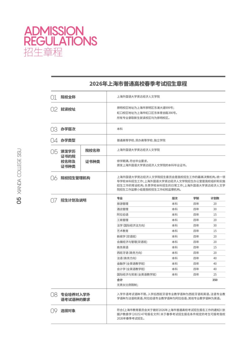 1、上海外国语大学贤达经济人文学院2025年招生章程