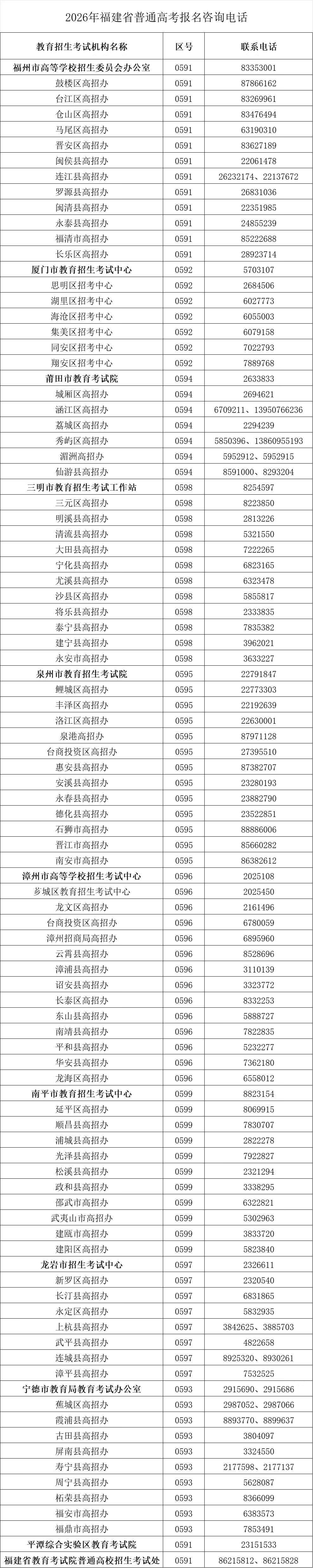 根据《福建省高等学校招生委员会福建省教育厅关于福建省普通高考报名有关事项的通知》以及教育部有关规定,为做好2026年我省普通高等学校招生考试(以下简称“普通高考”)报名工作,现将有关事项通知如下。