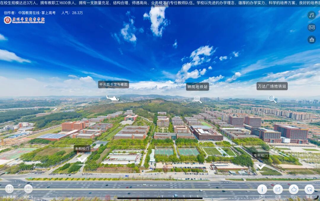 将看到超炫酷的华职全景页面