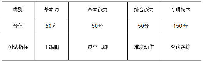 (3)武术项目测试指标与所占分值