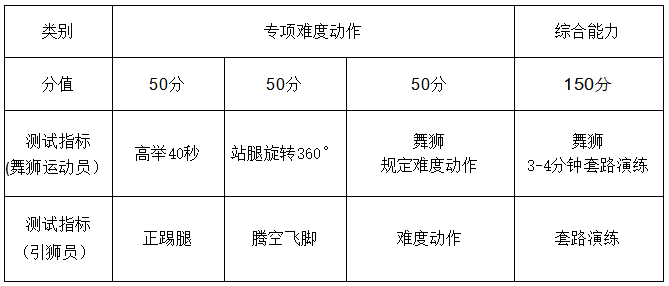 (4)舞狮项目测试指标与所占分值