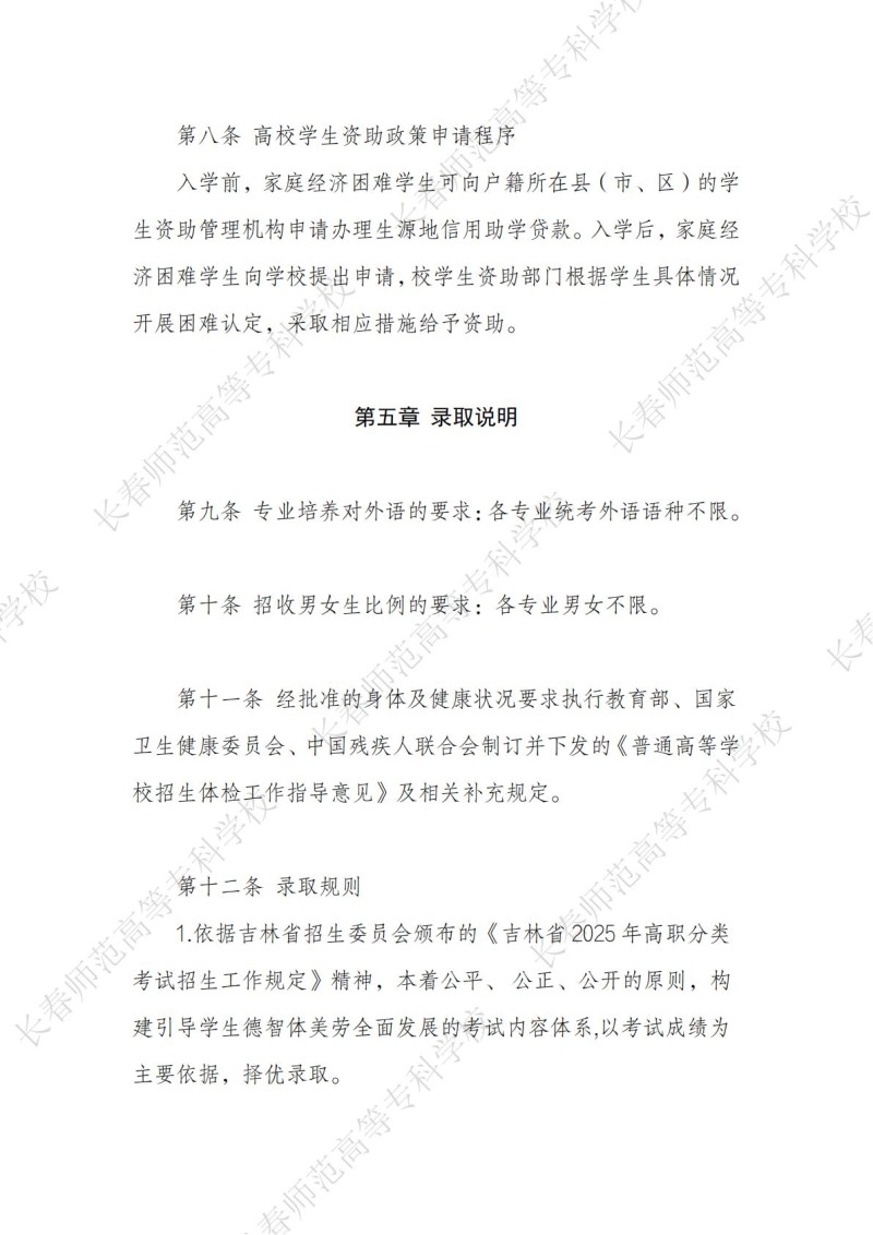 1、长春师范高等专科学校2025年招生章程