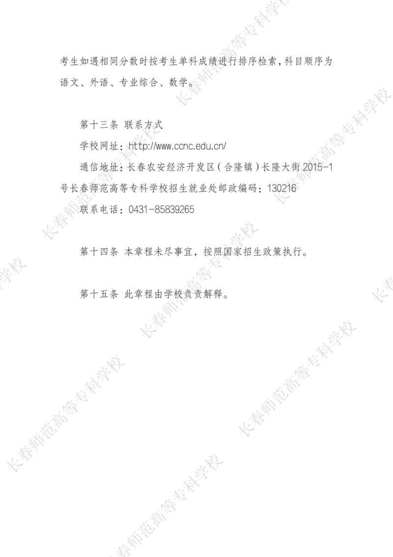 5、长春师范高等专科学校2023年招生章程
