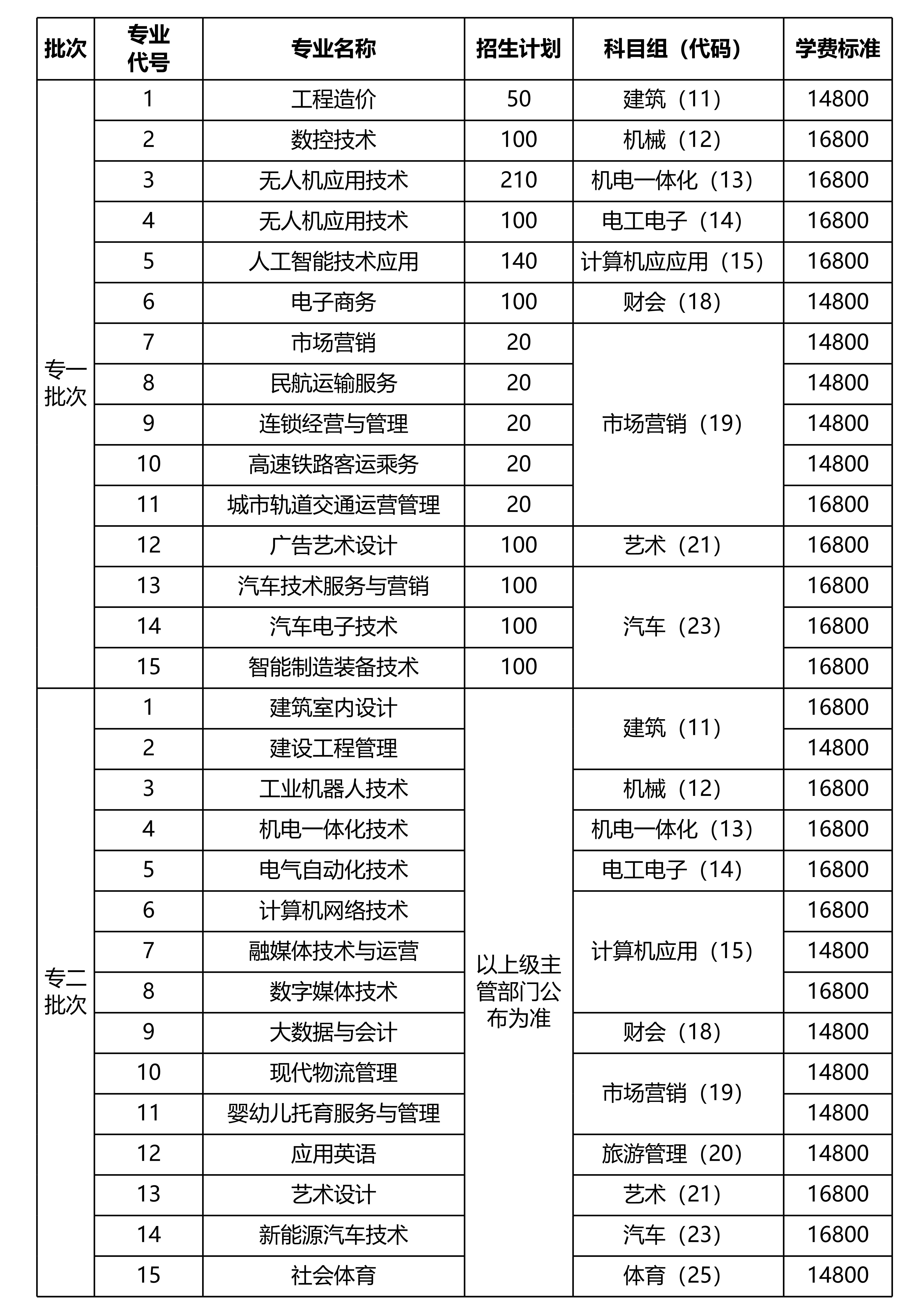 注:最终招生专业、及专业对应科目组等以省教育考试院发布为准。