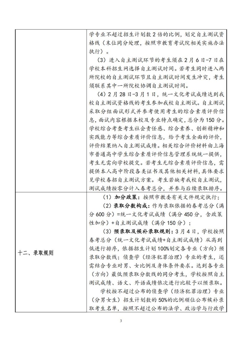 4、华东政法大学2023年春季高考招生章程