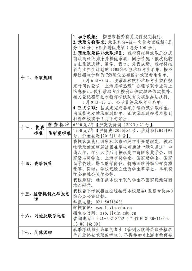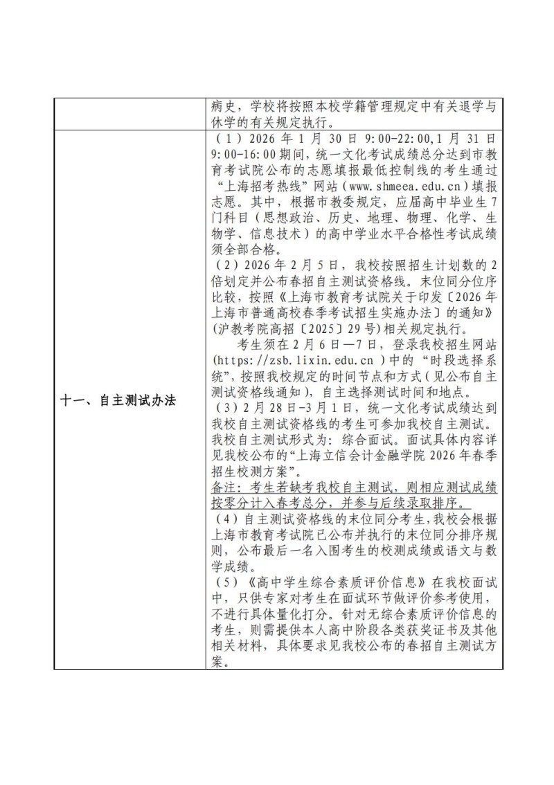 3、上海立信会计金融学院2024年春季高考招生章程