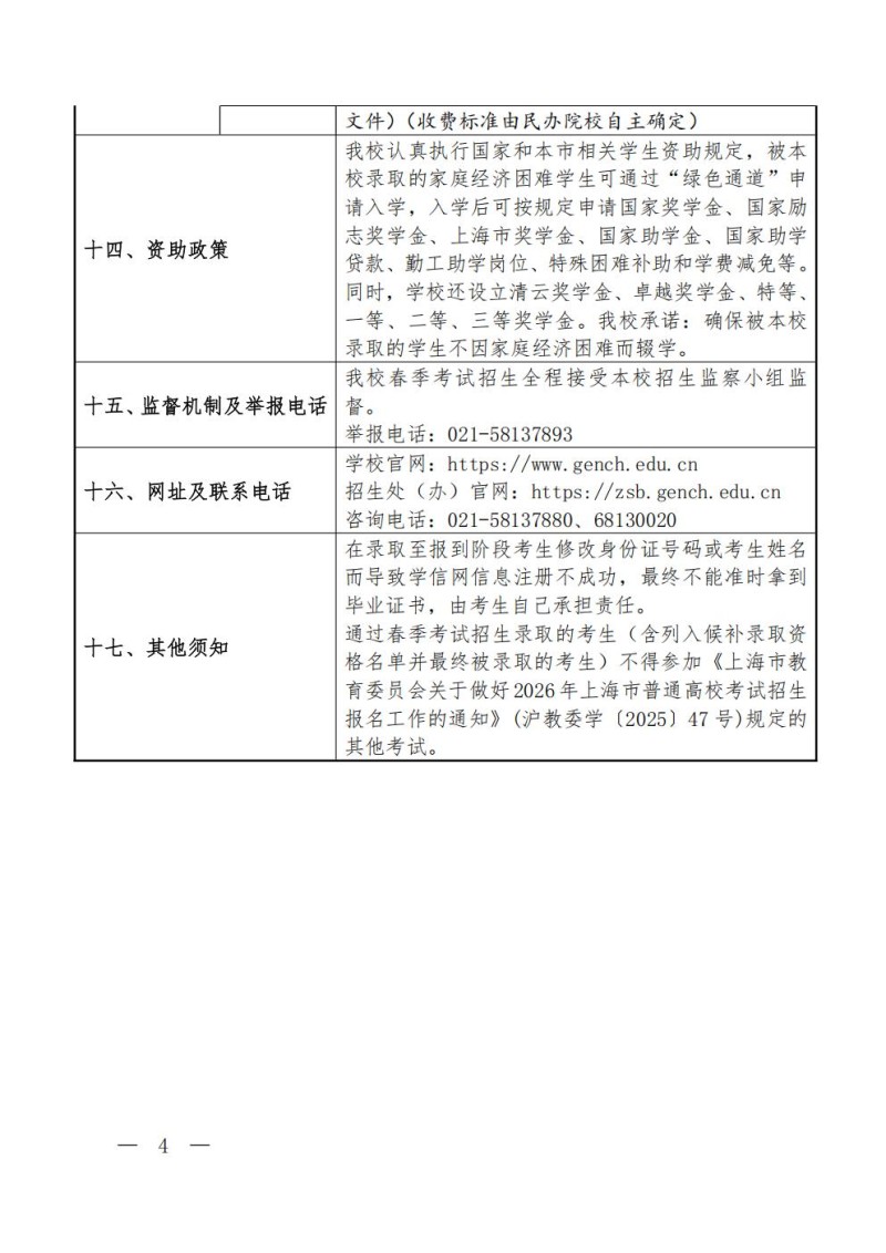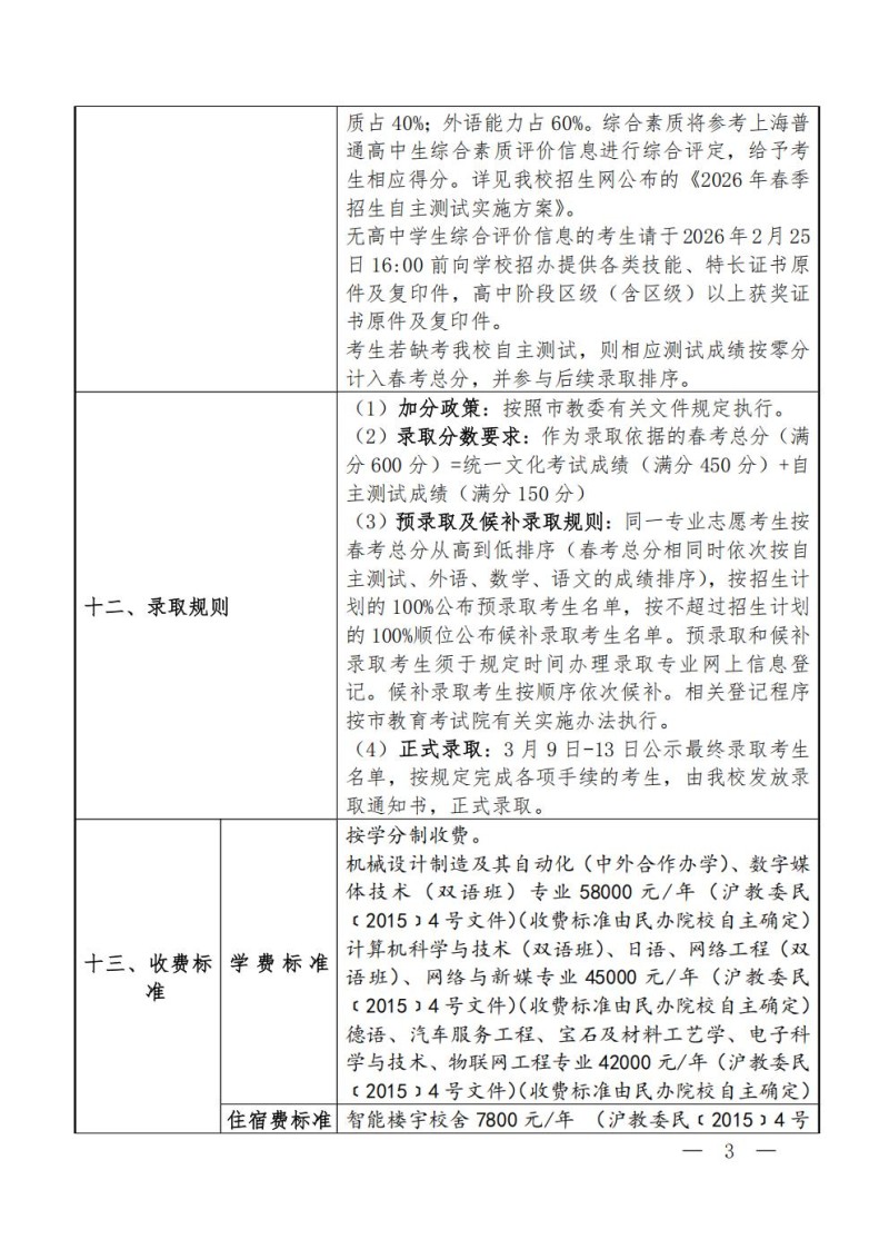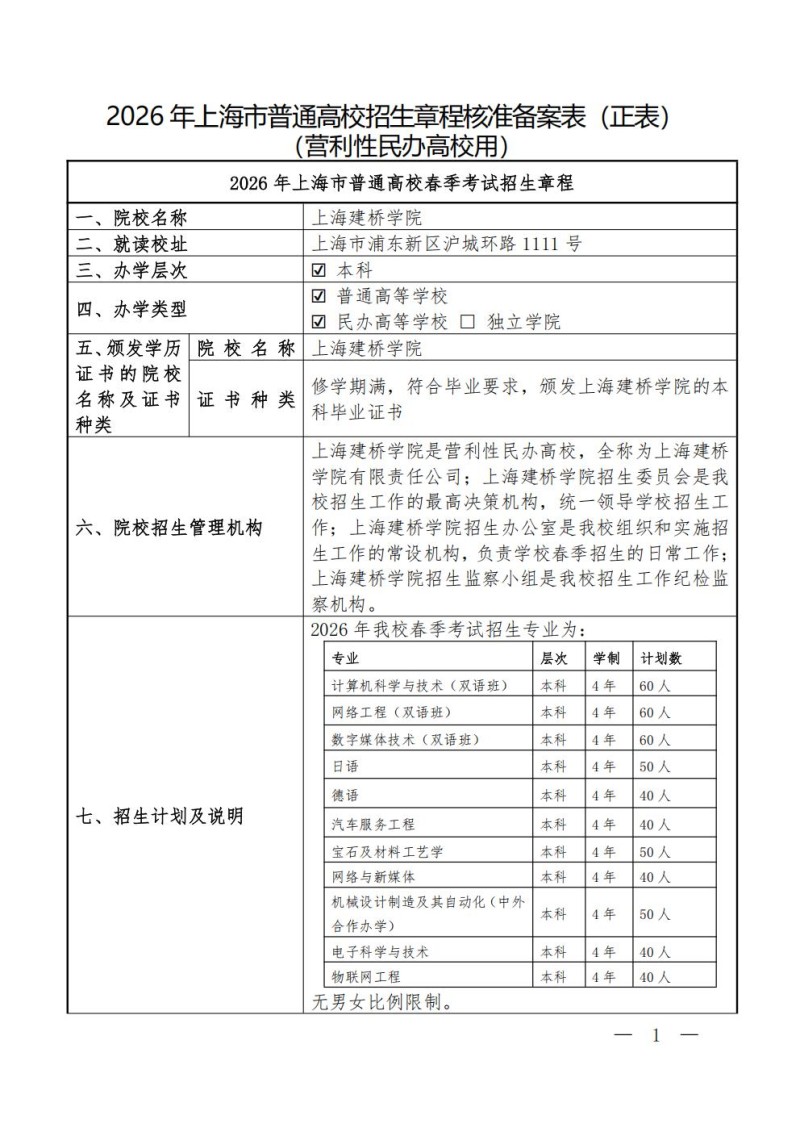 上海建桥学院2026年春季高考招生章程