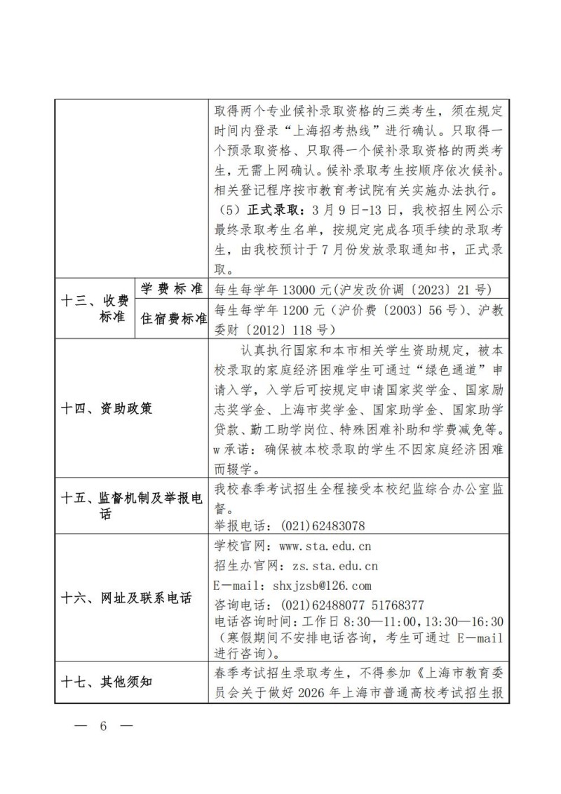6、上海戏剧学院2026年本科校考专业(招考方向)与各...