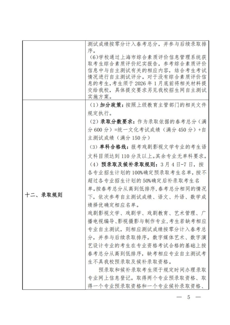 5、上海戏剧学院2026年艺术类校考专业本科招生简章