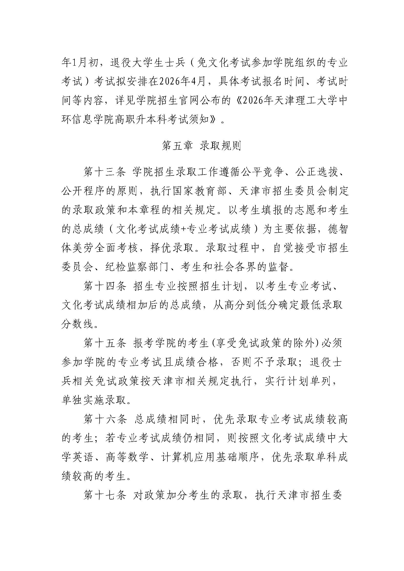 天津理工大学中环信息学院2026年高职升本科招生章程
