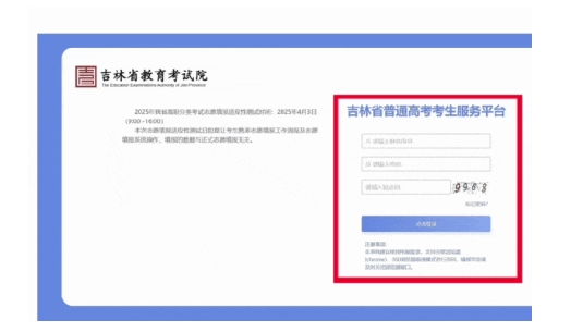 考生登录:打开吉林省教育考试院考生登录界面,输入报名序号、密码和验证码,点击登录按钮;(https://gk.jleea.com.cn)