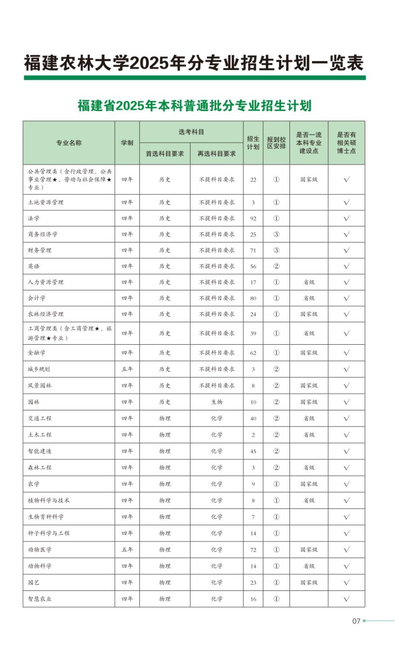 2、福建农林大学2025年普通高考招生章程