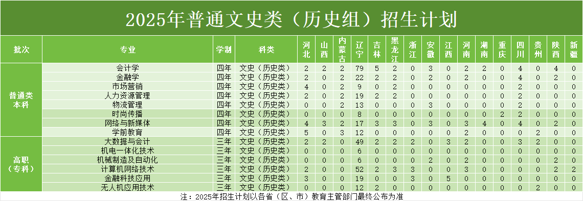 沈阳工学院2025年分省分专业招生计划