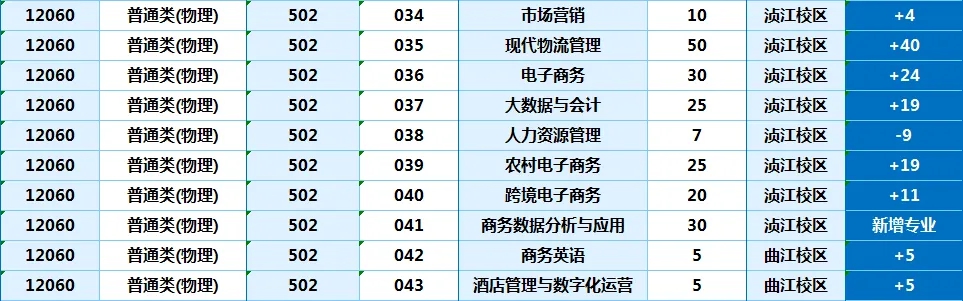 502专业组(物理):经济管理学院、外语商务学院的专业;