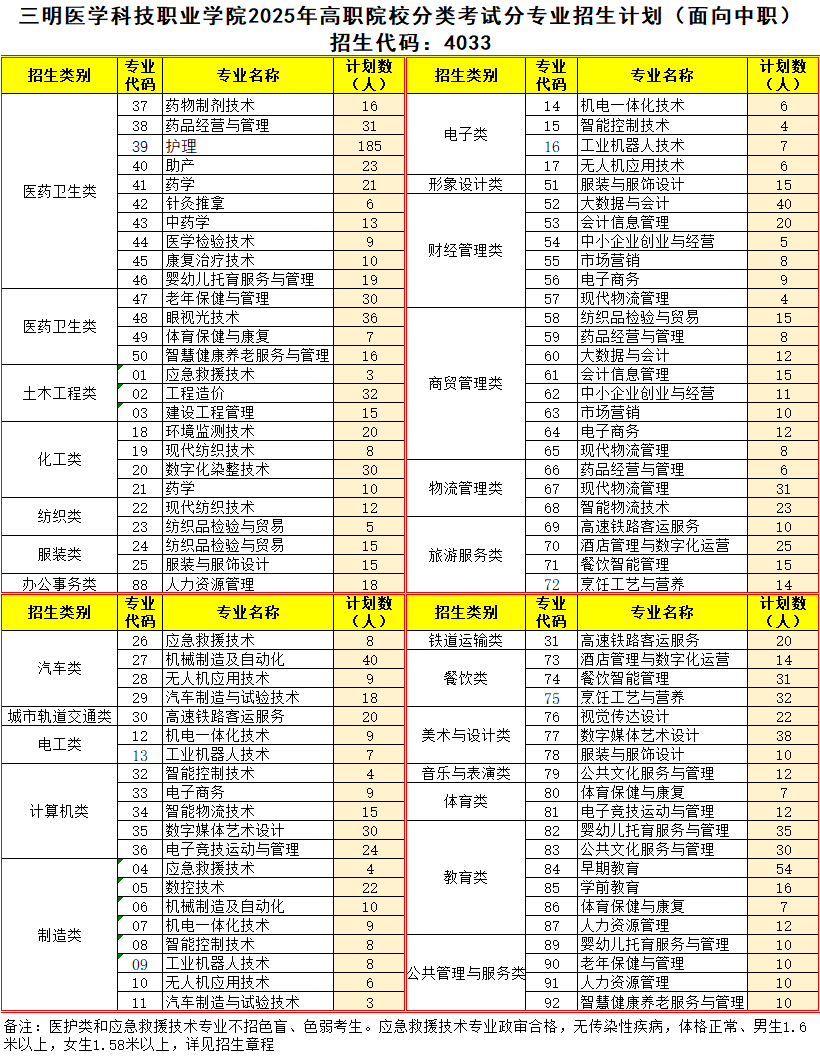 5、三明医学科技职业学院2023年高职分类考试招生章程