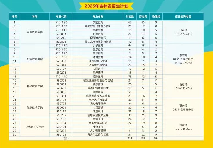 长春师范高等专科学校2025年吉林省高考招生计划