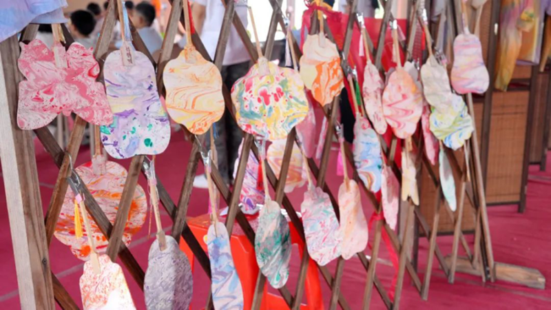 漆扇作品、扎染作品、立体绘本等创意成果展示