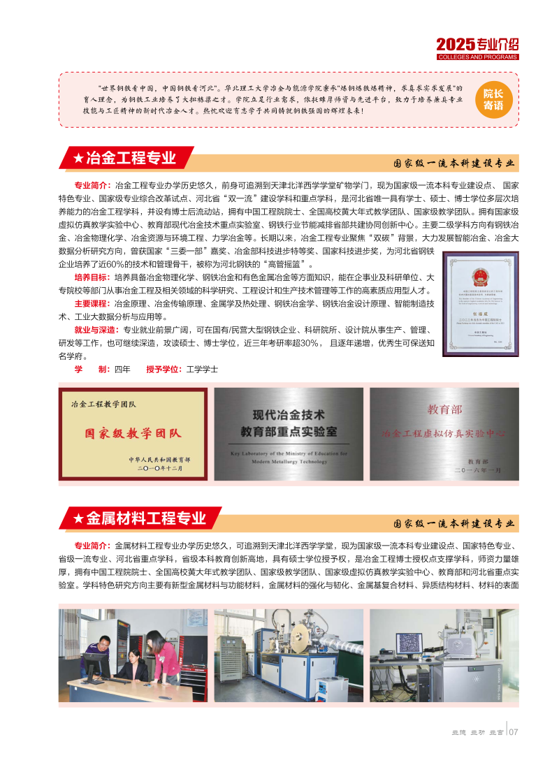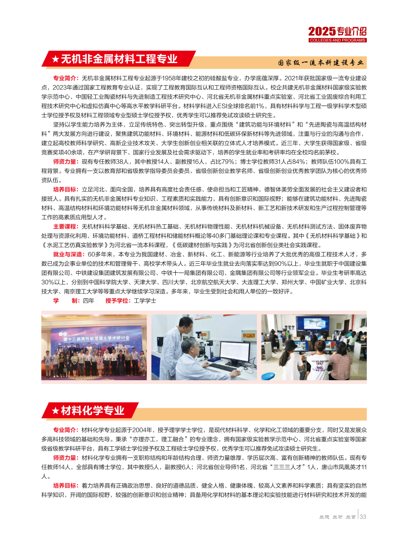 华北理工大学2025年各专业介绍