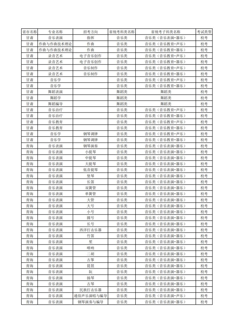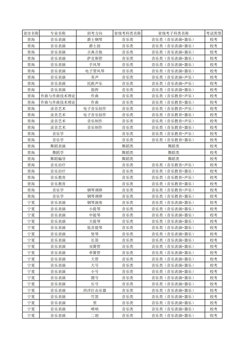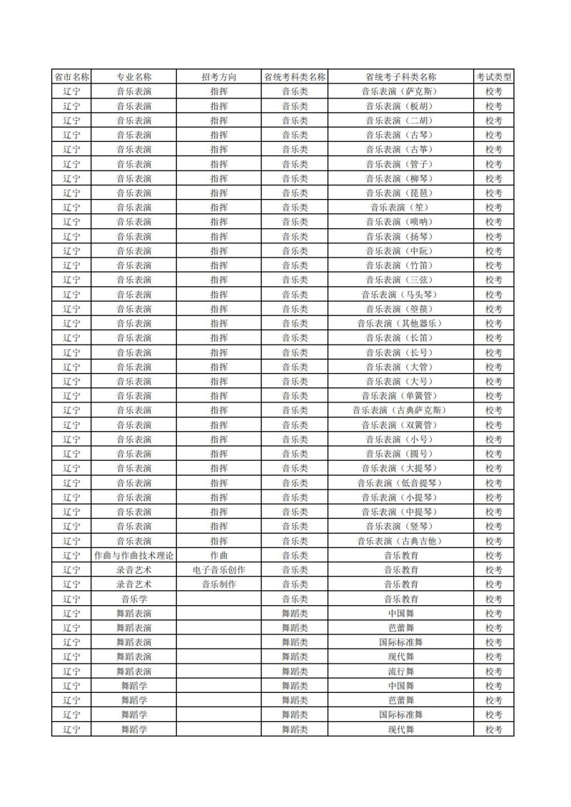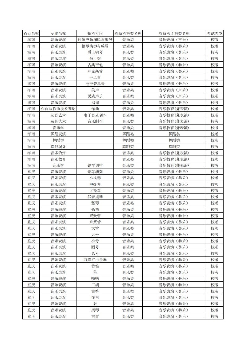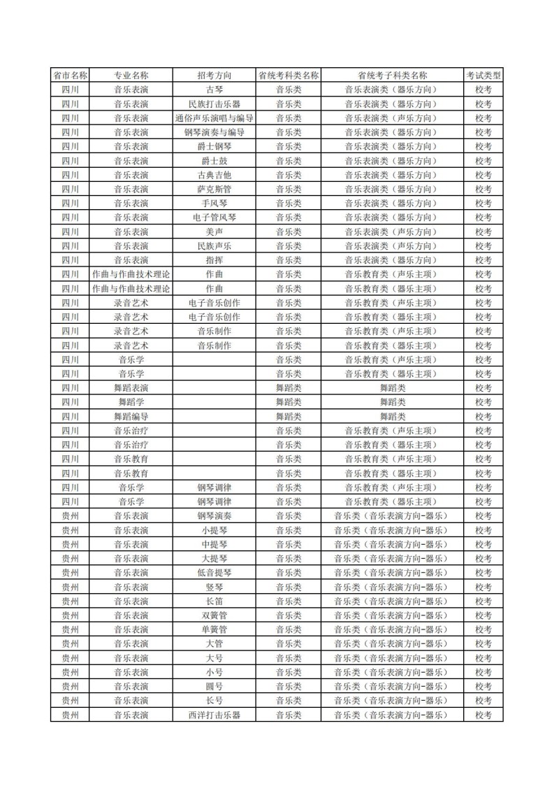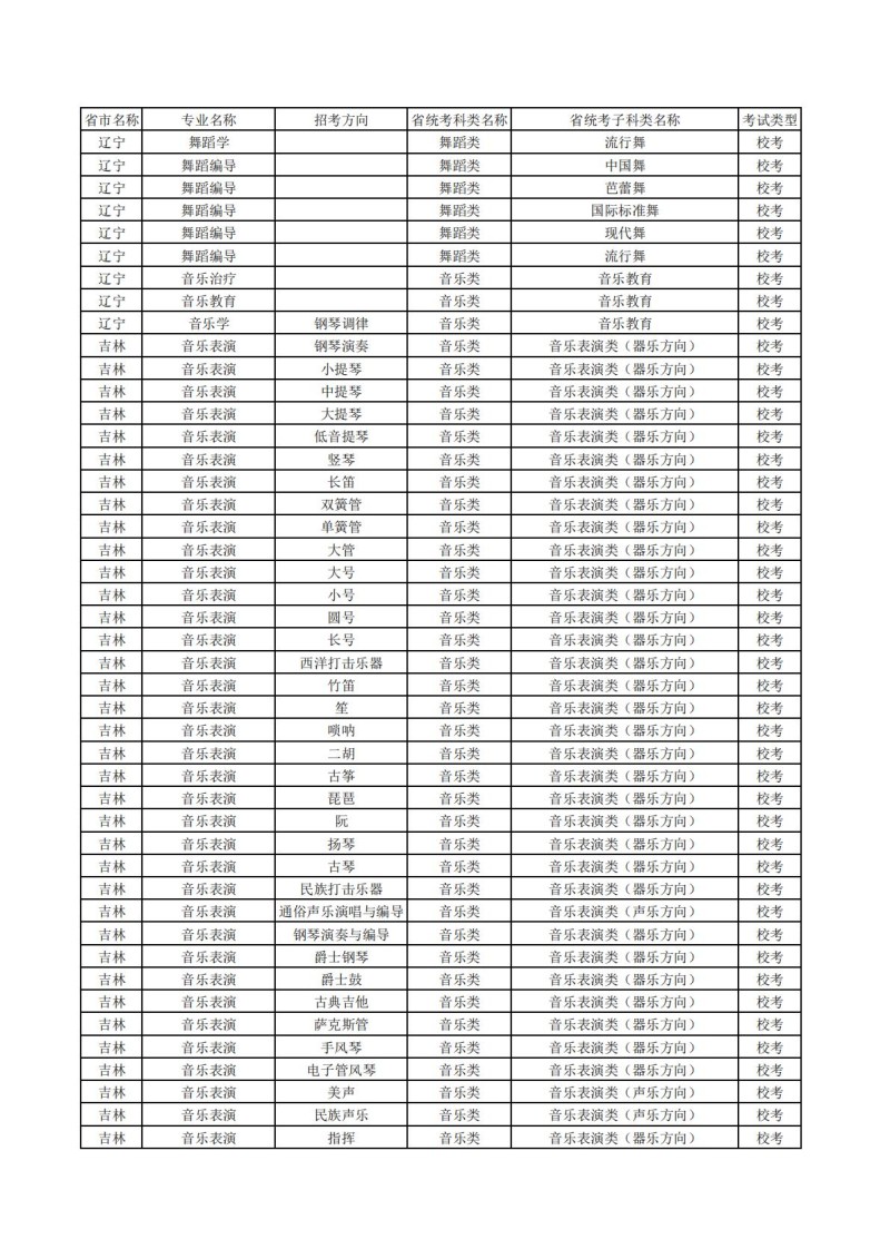 武汉音乐学院2026年普通本科校考招生专业和各省(市、自治区)统考子科类对照表