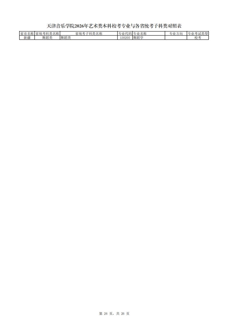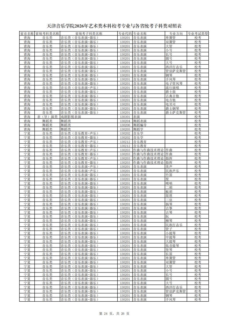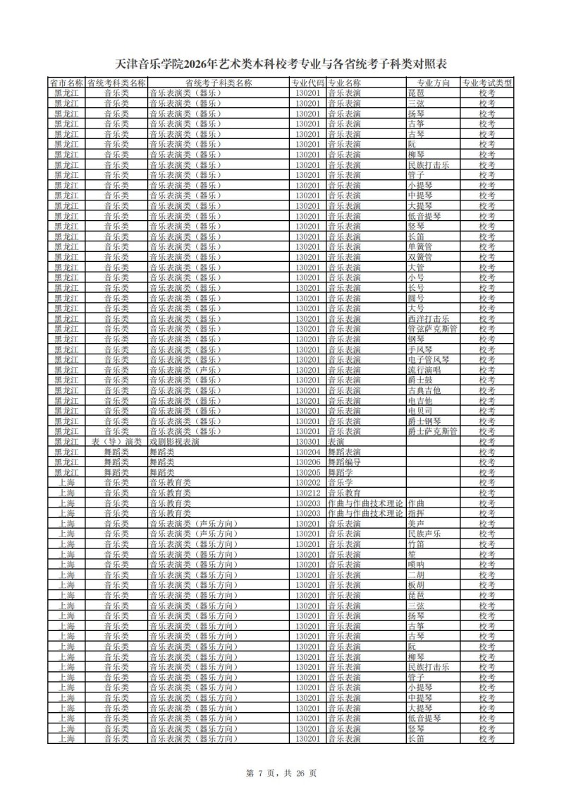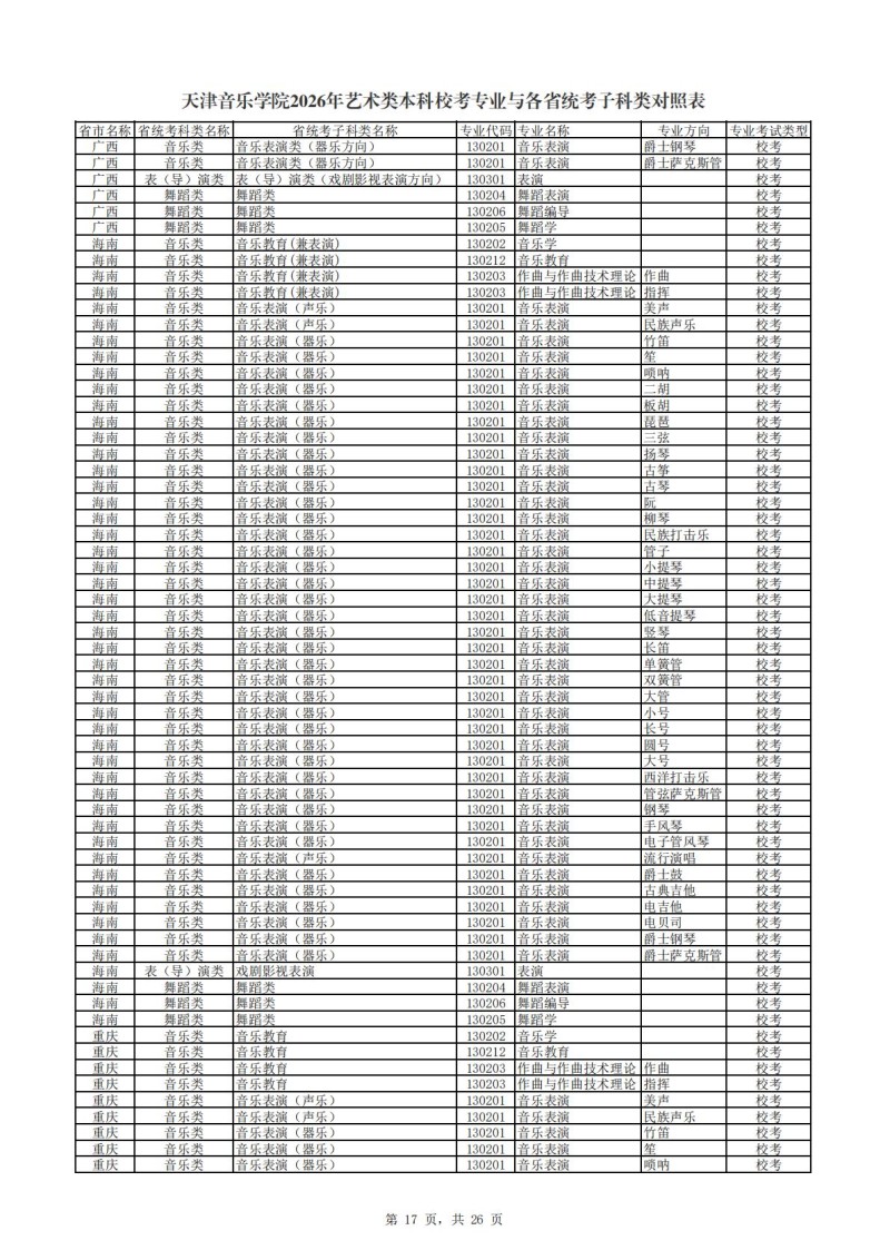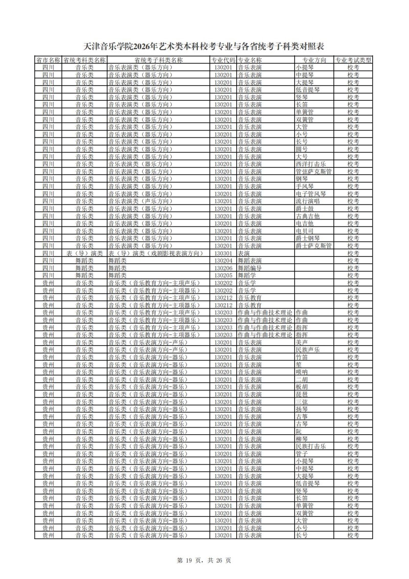 2、天津音乐学院2026年艺术类本科非校考专业与各省统...