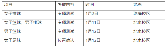 1.体育专项测试:所有考生均须参加与本人运动员技术等级证书对应项目的体育专项测试。其中女子足球项目除须参加学校组织的报考位置确认实战比赛外,还须参加体育专项测试全国统测,学校依据考生参加全国足球统测所取得的成绩和所确认的报考位置进行资格认定。