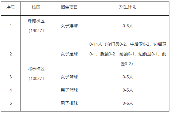 3.考生须在省级招生考试机构规定的志愿批次内以第一志愿报考我校。女子足球、女子篮球、男子篮球、男子排球项目考生专业志愿可选报北京校区体育教育专业;女子排球项目考生专业志愿可选报珠海校区人文科学试验班(历史学)。如遇当年招生专业调整,以实际招生专业为准。