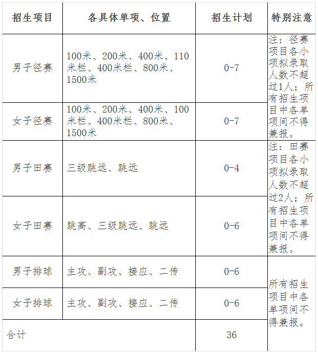 1、高级中等教育学校毕业,获得国家二级运动员(含)以上证书且高中阶段在省级(含)以上比赛中获得集体项目(排球)前六名的主力队员或个人项目(田径)前三名者;