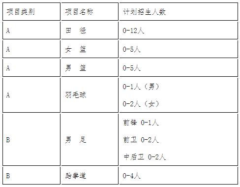 (2)A类项目中部分运动成绩较为突出,确有培养前途的入围考生,高考成绩(不含政策加分)不低于生源省份本科第二批次录取控制分数线的65%。