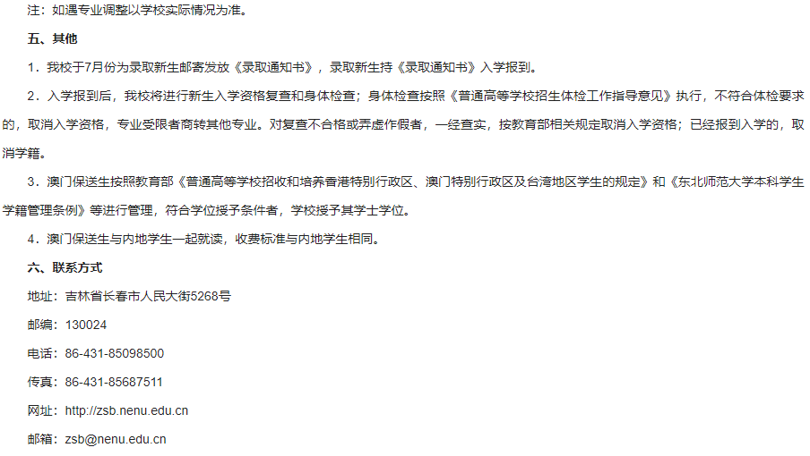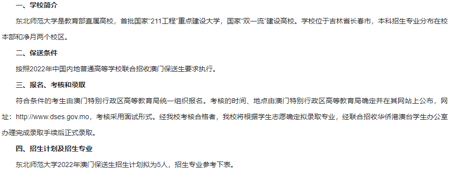 东北师范大学2022年澳门保送生招生简章