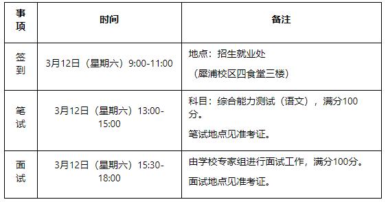 3、专项测试:考生须持本人身份证原件和准考证参加复试,复试由笔试和面试两部分组成,具体安排如下: