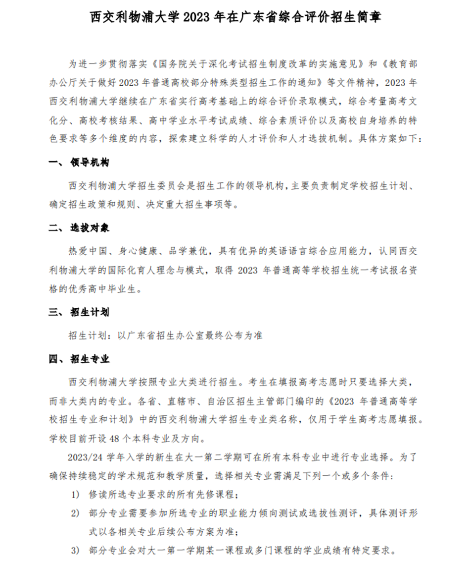 1、西交利物浦大学 2024 年中国内地本科招生章程