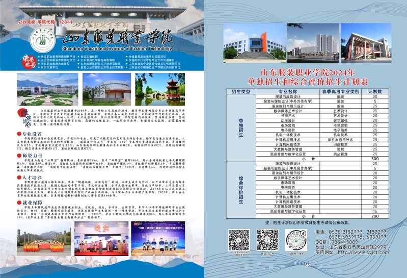 山东服装职业学院2024年单独招生和综合评价招生简章