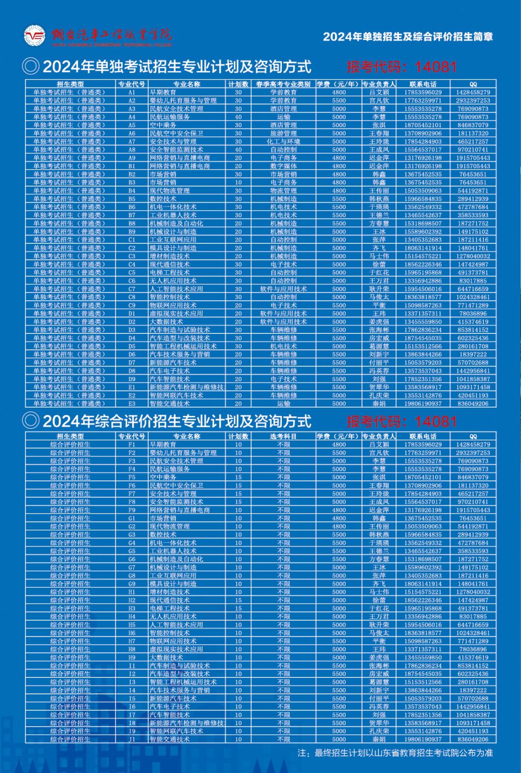 烟台汽车工程职业学院2024年单独招生与综合评价招生简章